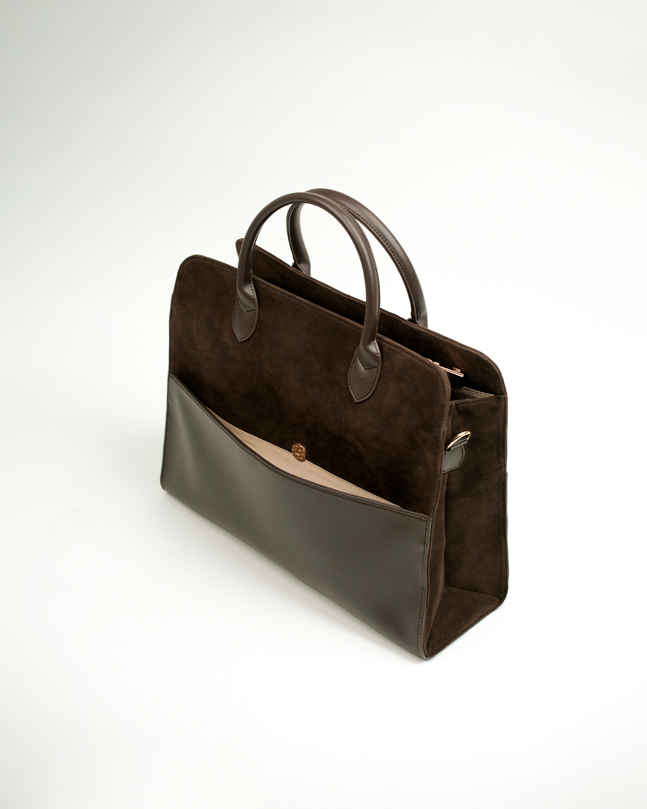 Kombinasi suede dan vegan leather menciptakan tampilan yang lembut tapi berkarakter. Untuk kamu yang menghargai detail dan percaya diri dalam kesederhanaan.